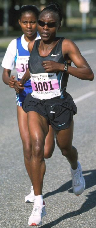 Women' winner Gladys Asiba digs past runner-up Ejegayehu Dibaba on Canal St.
